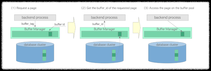 (3) backend process는 buffer pool에 buffer_id slot을 접근해서 원하는 page를 읽음.