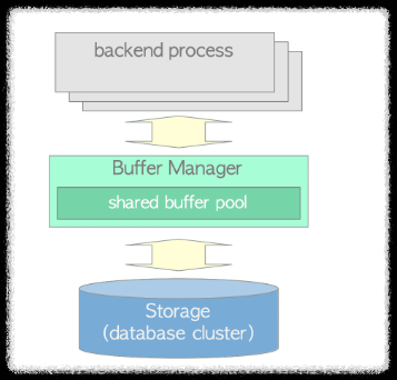 buffer manager는 shared memory와 DB 스토리지 간 data 전송을 관리함.