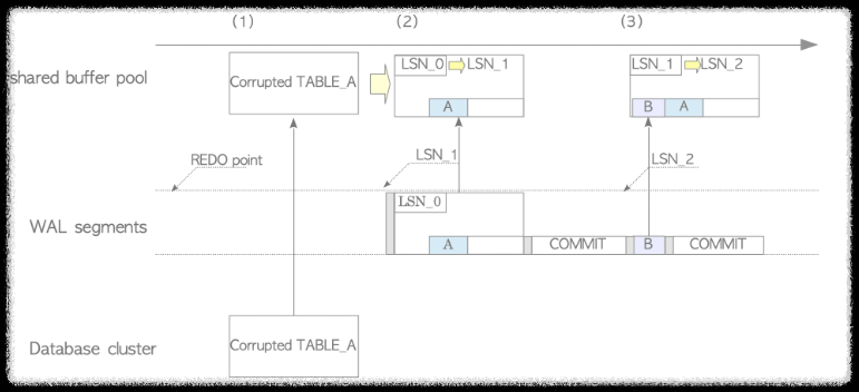 단, full page image인 경우엔 lsn과 상관없이 WAL에 저장된 full page image를 shared buffer pool에 올라온 data page에 overwrite함.